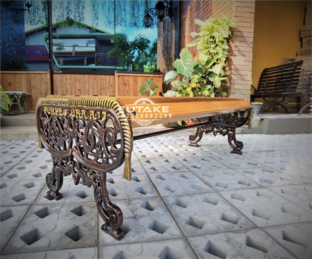 Dengan desain yang antik dan kekuatan yang tahan lama, Kursi motif akar emas ini sangat direkomendasikan sekali untuk dijadikan sebagai furniture untuk menghias area outdoor seperti taman atau trotoar.