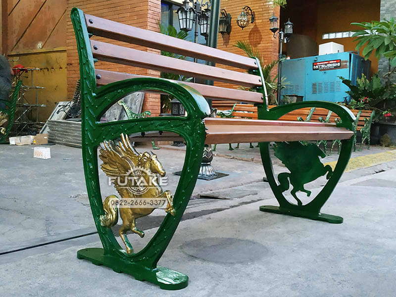 Desain kursi-kursi antik buatan Futake terinspirasi dari berbagai macam kursi luar negeri maupun kursi lokal yang kami produksi dengan kreasi kami sendiri. Salah satu kursi hasil karya kami yang terinspirasi dari luar negeri ialah kursi antik eropa motif kuda terbang ini. Kursi tersebut kami buat sedemikian rupa hingga mirip kursi-kursi eropa dengan tambahan ornamen kuda terbang. Ornamen ini kami produksi menggunakan material metal casting / bahan cor logam berkualitas. Pun juga sama pada rangka kursi ini, mulai dari rangka sandaran sampai rangka kaki-kakinya terbuat dari bahan cor logam.