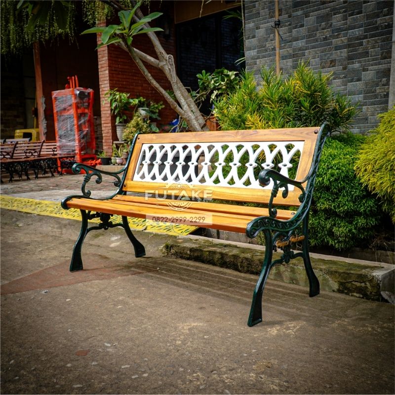 Dengan material besi cor yang kuat dipadukan dengan kayu sandaran yang menjadikan kursi teras ini terlihat artistik. Akan memberikan kesan indah pada teras anda. Selain digunakan di teras, kursi besi cor ini bisa juga anda pasang di taman atau tempat bersantai di rumah anda.
