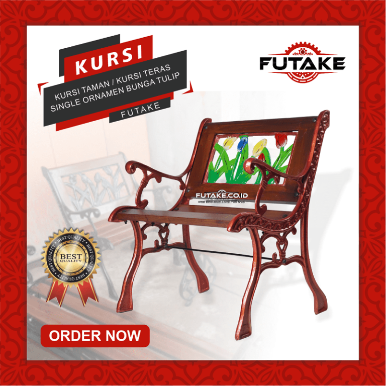 Kursi Taman Ornamen Single Bunga Tulip – Kursi single ornamen bunga tulip merupakan salah satu produk kursi cor Futake yang memiliki desain ornamen bunga tulip pada bagian sandarannya. Dibuat dengan bahan besi/alumunium cor pilihan menghasilkan kursi yang berkualitas, kuat dan tahan lama. Kursi ini ditujukan untuk menghias teras rumah, taman atau area outdoor hunian anda lainnya. Juga bisa untuk mempercantik perkantoran, hotel, apartemen, resto, dan sebagainya. Spesifikasi Produk :