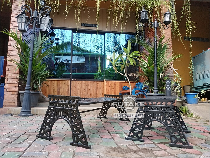 Sebagai perusahaan spesialis cor logam, Futake telah berpengalaman lebih dari 3 tahun terjun di bidang produksi kursi taman pedestrian. Berbagai macam kursi tersebut terinspirasi dari model kursi-kursi lokal maupun kursi pedestrian luar negeri. Salah satu kursi hasil karya kami yaitu kursi trotoar antik menara eiffel ini. Kursi menara eiffel kami terinspirasi dari kursi-kursi Eropa yang desainnya menyerupai Menara Eiffel.